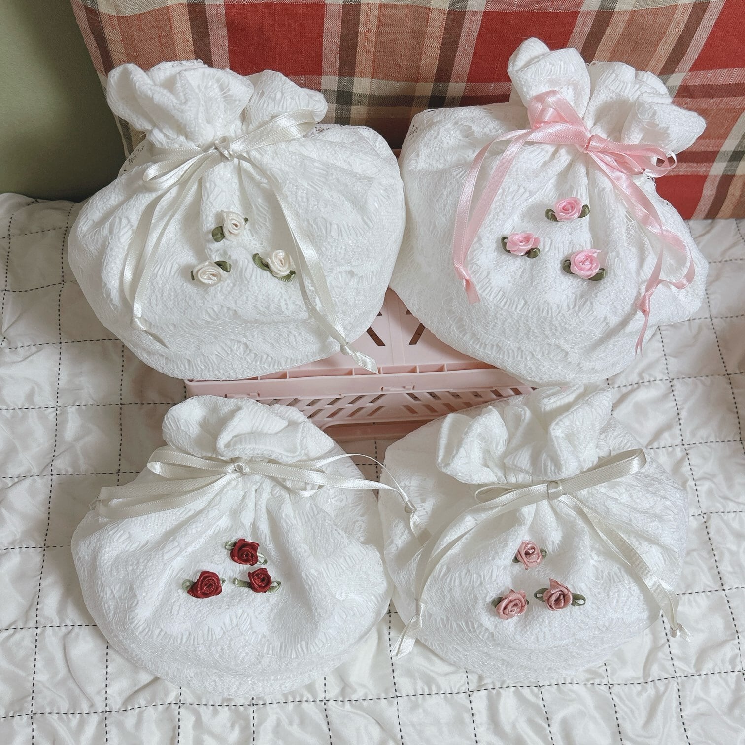 フリルをたっぷりとあしらった大人かわいい巾着です!